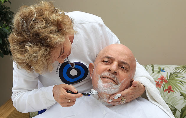 O ex-presidente Luiz Inácio Lula da Silva cortou nesta quarta-feira (16) o cabelo e a barba, mantendo apenas o bigode, alterando uma imagem de décadas. A ex-primeira-dama Marisa Letícia foi quem raspou a barba e o cabelo de Lula, que se submete a sessões de quimioterapia em um tratamento contra um câncer na laringe.